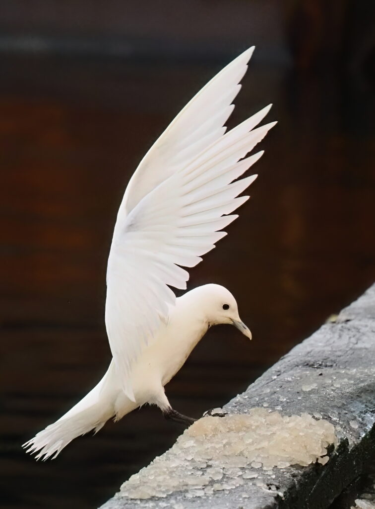 Hetta er bert 7. skráseting síðan 1950 í Føroyum. Ísmásin í Klaksvík er ein gamal fuglur. Hann er so snjóhvítur sum hann kann vera og minnir næstan um ein eingil á flogi. Ungir ísmásar hava svartar blettir á veingjunum og dimman lit um høvdið.